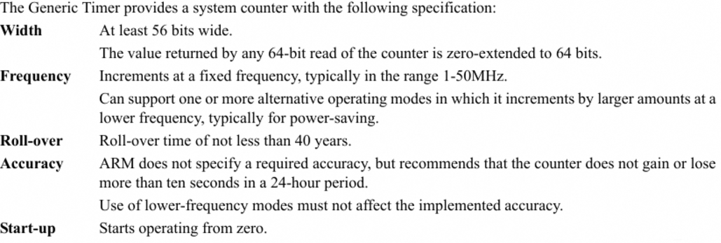 - arm arch timer 每个核上的timer一直是在计数的,设置中断信号之后,要在中断函数中更新CompareValue或TimeValue的值