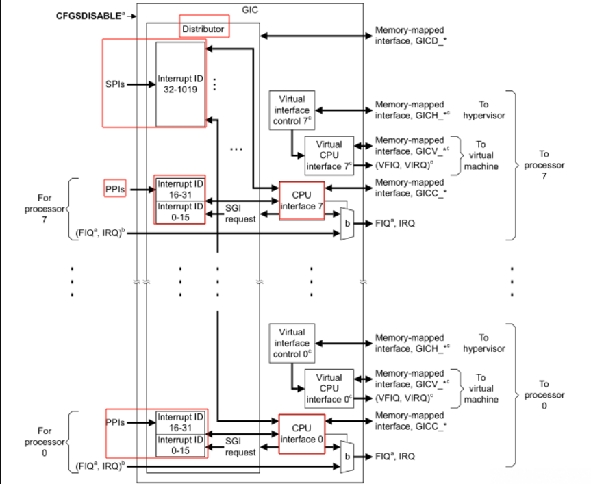 Shared Peripheral Interrupts :32-1019,支持480个 (cortexa7,179)