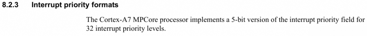 - GICC_BPR:设置group,Subpriority(0,全抢占,7,禁止抢占)